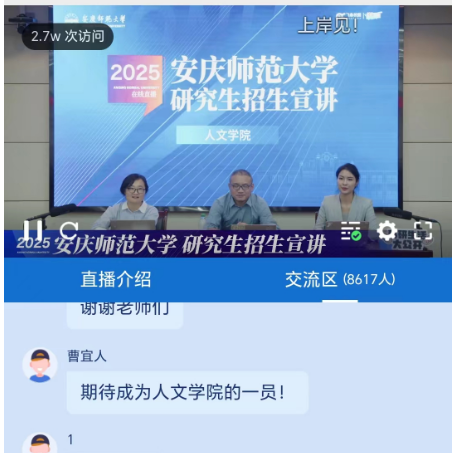 本次宣讲会在多个网络平台同步直播,吸引了众多考研学子积极参与、踊跃提问,最高访问人数达2.7万人次,互动交流8600多人。本次直播宣讲在为各位考生答疑解惑、鼓舞士气的同时,也扩大了学院的影响,增进了考生对学院各招生专业的了解,达到了良好的宣传效果,为后续研究生招生报名考试及录取工作提供了有力保障。