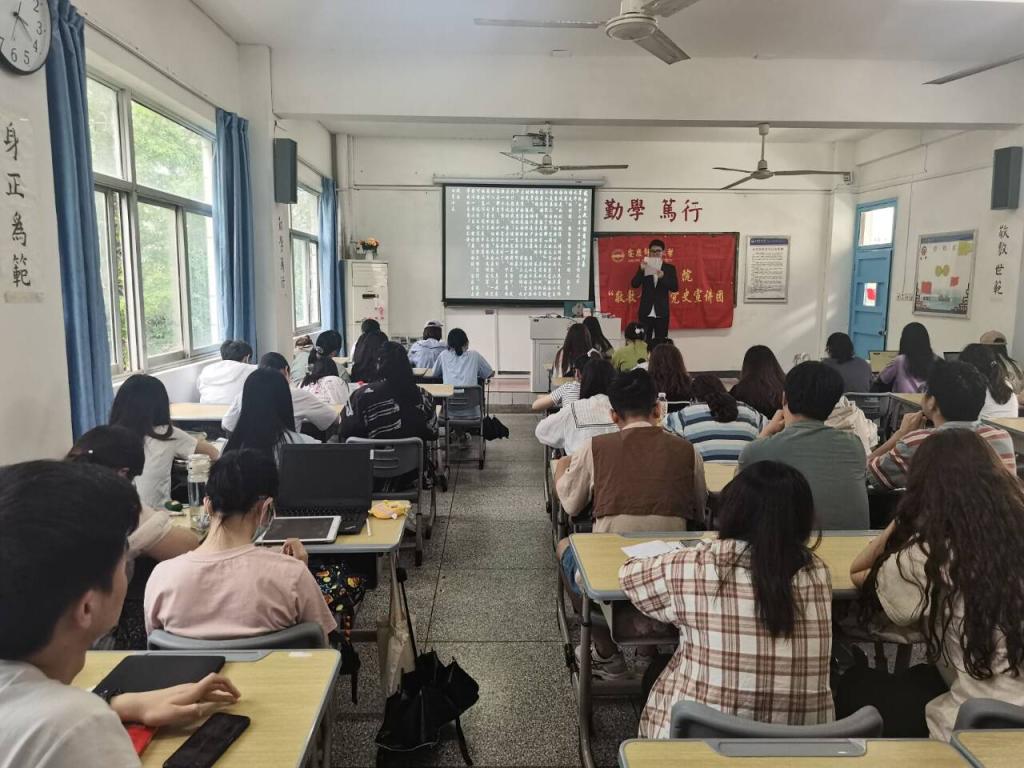 为推进党史学习教育常态化长效化,持续深化爱国主义教育,传承红色基因,不断增强听党话、跟党走的自觉性,yl7703永利官网“敬敷青年”党史宣讲团于6月1日下午开展了“余章之白,独伊忠爱——纪念瞿秋白与瞿独伊先生”专题党史教育宣讲活动,宣讲人为薛正阳。yl7703永利官网第二期“青马学堂”全体学员参与了本次活动。