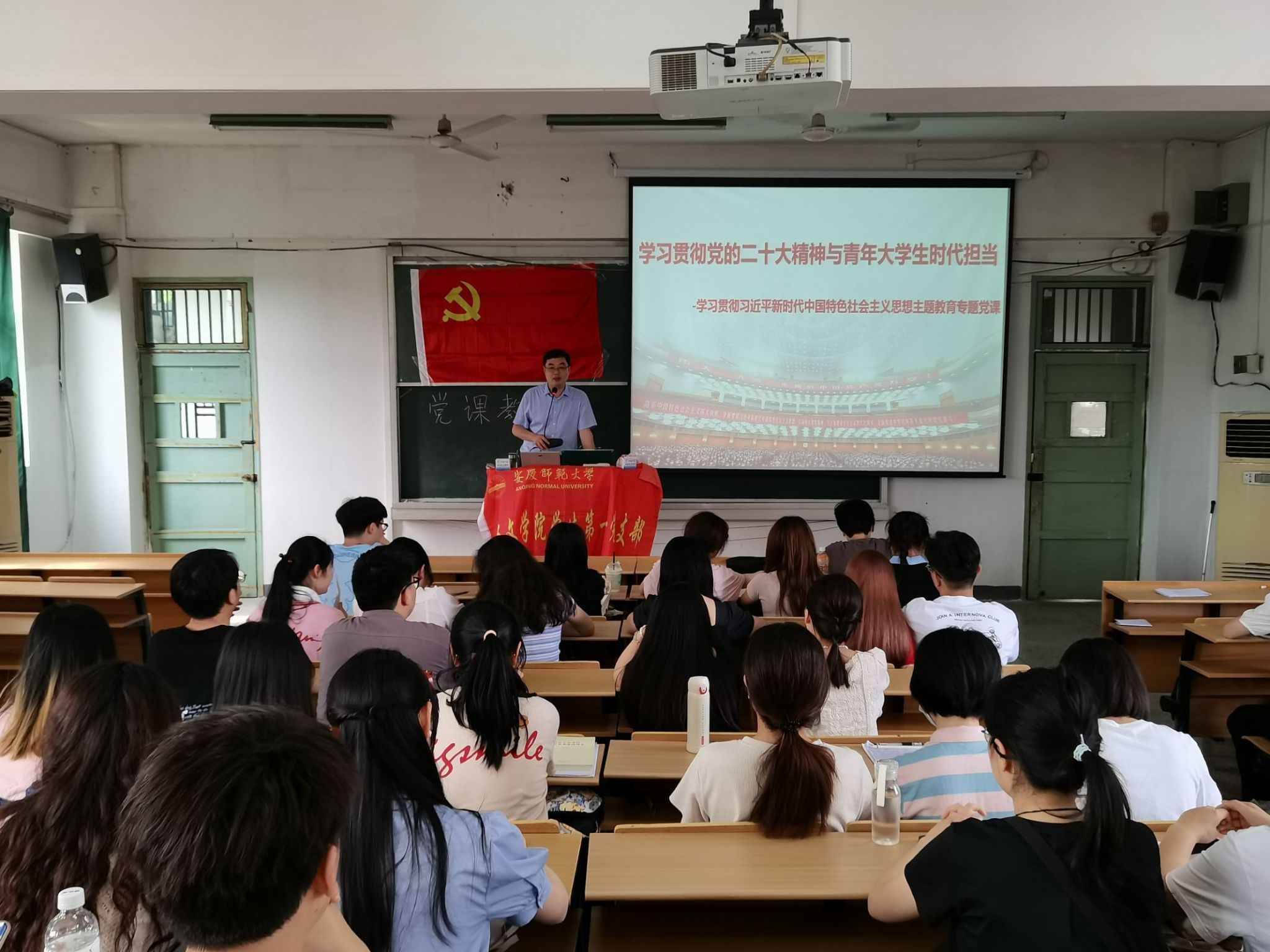 6月6日下午,yl7703永利官网开展“学习贯彻党的二十大精神与青年大学生时代担当”主题党课,党委副书记王波担任主讲,yl7703永利官网学生第一党支部全体党员参加。