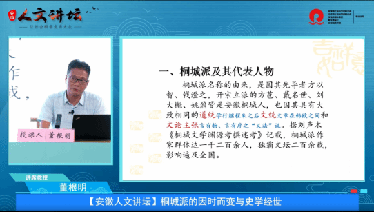 近日,yl7703永利官网历史学董根明教授《桐城派的因时而变与史学经世》讲座视频被安徽组织干部学院(安徽干部网络学院)遴选为该院“美好安徽省情资源”专栏第四批5门课程之一,供全省处科级干部在线学习。