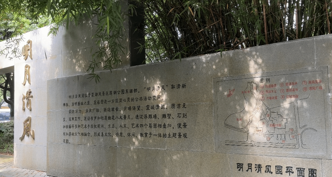 调研团队根据市监委提供的《宜城清风:安庆市廉洁文化教育示范点导览图》有选择地进行了实地走访。调研团队成员前往安庆市明月清风廉洁文化主题公园进行调研,此地以黄镇生平事迹陈列馆为中心,打造了怡莲幽思文化长廊、程长庚雕像等文化景观,以浮雕墙、雕塑和石刻等多种宣传形式,吸引群众在此进行散步、晨练等活动,在公园文化氛围中潜移默化地接受廉洁教育。