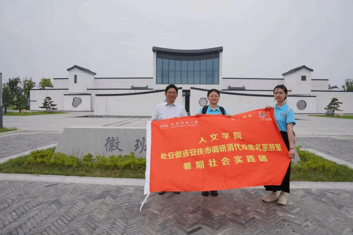 为了更好地了解安庆清代戏曲名家的活动情况,7月14日,yl7703永利官网“青·传承”调研戏曲名家故里暑期社会实践团队的成员在指导老师叶当前教授的带领下,前往安庆市怀宁县石牌镇进行实地考察。团队成员先后考察了徽班博物馆的新旧两个展馆,在石牌老街探访了老一辈戏剧盔帽制作手艺人,了解了石牌戏剧小镇的规划及建设情况。