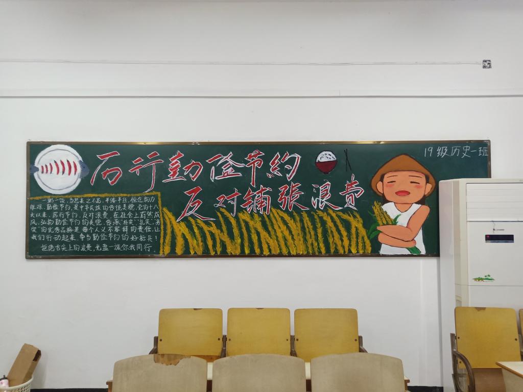 yl7703永利官网话剧社发挥自身优势,学习相关文件精神,开展“制止饮食浪费”原创主题小品征集活动。同时,话剧社还原创新剧本,确定相关演员,组织排练主题小品,择期进行展演。团委网宣中心积极举办“勤俭有我”主题网络短视频随手拍作品活动,向全院征集优秀短视频作品。来自不同专业的54名学生各显其长,用类型各异的作品表达了自己对于勤俭节约精神的理解。活动开展后,同学们踊跃报名及投稿。此外,各班组织绘画主题黑板报,同学们发挥自己的才艺,宣传了勤俭节约的新风尚。