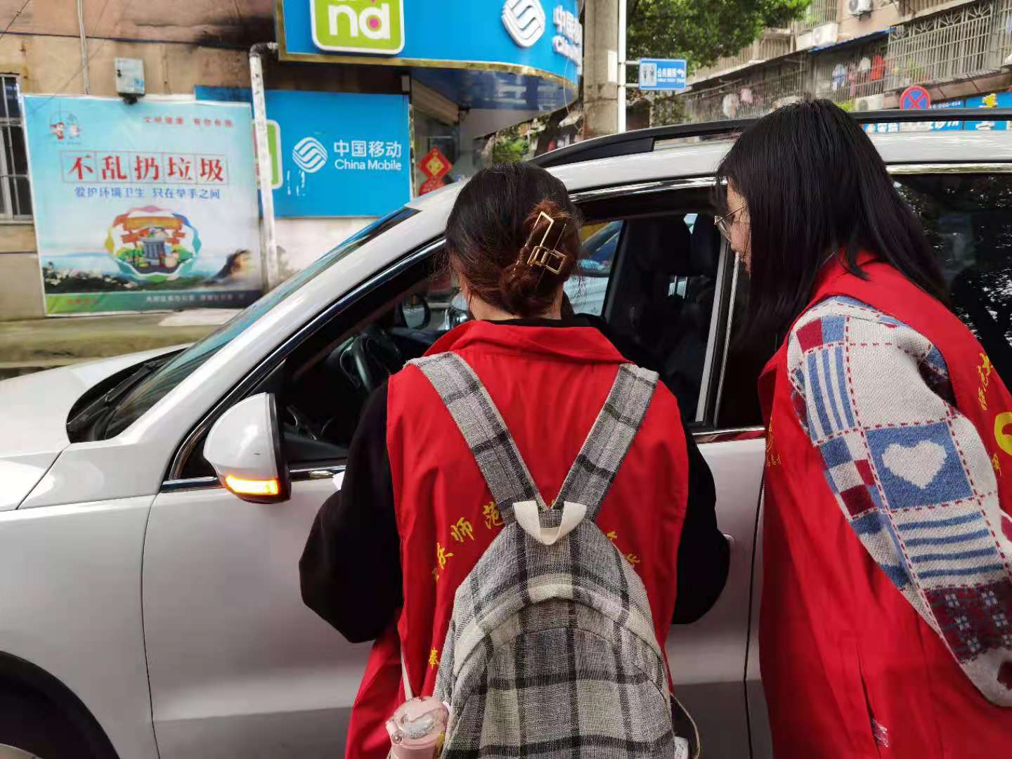 同学们穿上红色志愿者服装,来到小区出入口。他们拿起纸笔,走到车辆附近,详细询问、登记车主相关信息,留存备案。遇到外来车辆,及时劝阻其入内。登记的目的一是为了区分本小区车辆和外来车辆,二是为了掌握小区车辆数字信息,以便开展下一步车辆管理工作。最终,统计出车辆信息220余条。