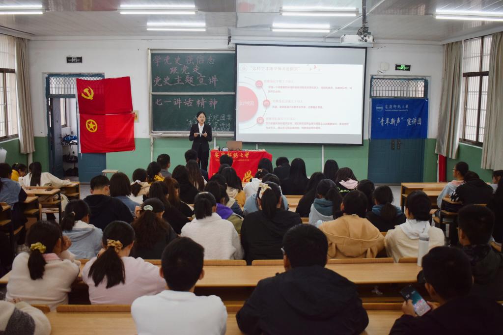 为加强党史学习教育,厚植理想信念,提高党史学习积极性,10月20日下午,校“青年新声”党史宣讲团在菱湖校区开展学习习近平总书记的“七一讲话”为主题的党史宣讲活动,yl7703永利官网“敬敷青年”党史宣讲团、团委学生会主要负责人、2020、2021级团员代表参与此次活动。