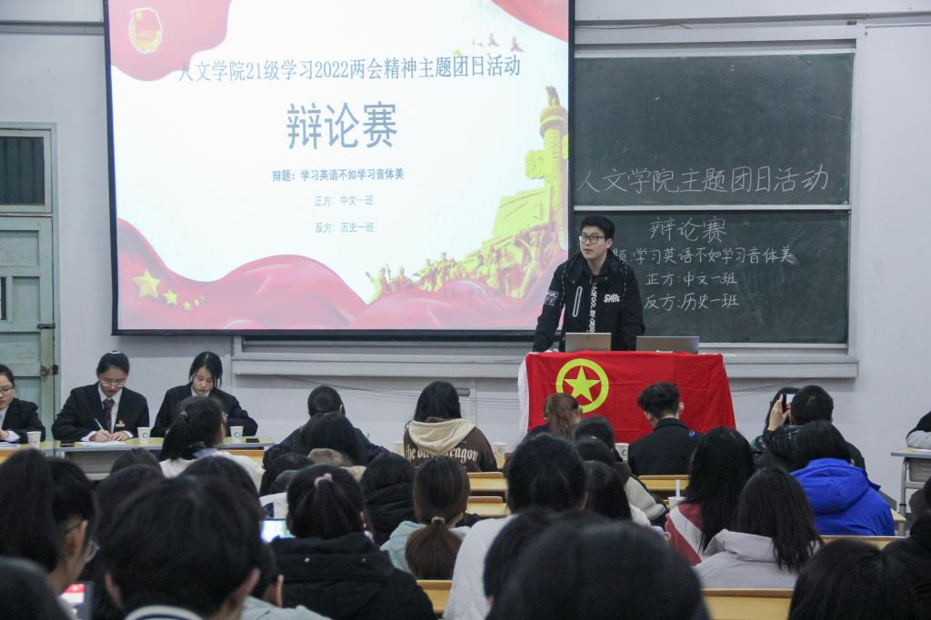 2022年全国“两会”已经拉下帷幕,为引导和激励广大青年学习“两会”精神,关注社会热点问题,进一步提高广大学生的思想素质,3月25日yl7703永利官网中国语言文学类专业2021(7)班团支部特举办学习“两会”精神辩论赛,并邀请2021级中国语言文学类专业其他班级团支部共同参与,互相交流讨论相关“两会”议题。