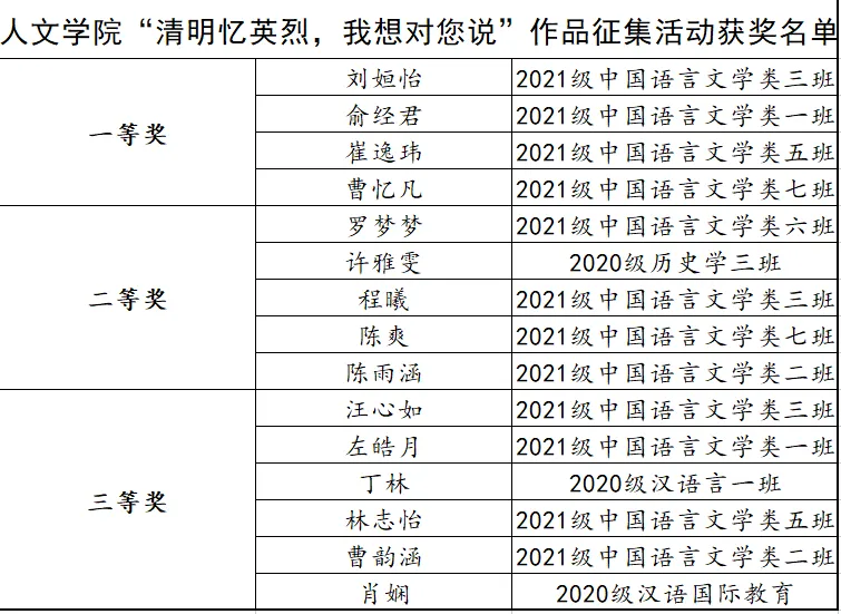 清明时节雨纷纷,春雨洒洒泪成眠。悠悠历史,泱泱中华,英雄长眠,但其精神永存,幻化成永不磨灭的丰碑高高矗立在我们心间。最深的悼念是铭记,最好的纪念是传承,最高的致敬是奋进,今日盛世如其所愿,明日中国定更加精彩。让我们在这春和景明,万象更新的日子里,慎终追远,致敬英烈。愿花飨逝者,春暖斯人。我们开展了”清明忆英烈,我想对您说“活动,写下我们想对烈士说的话,追忆我们的思念。让我们一起来看看有哪些优秀作品吧!