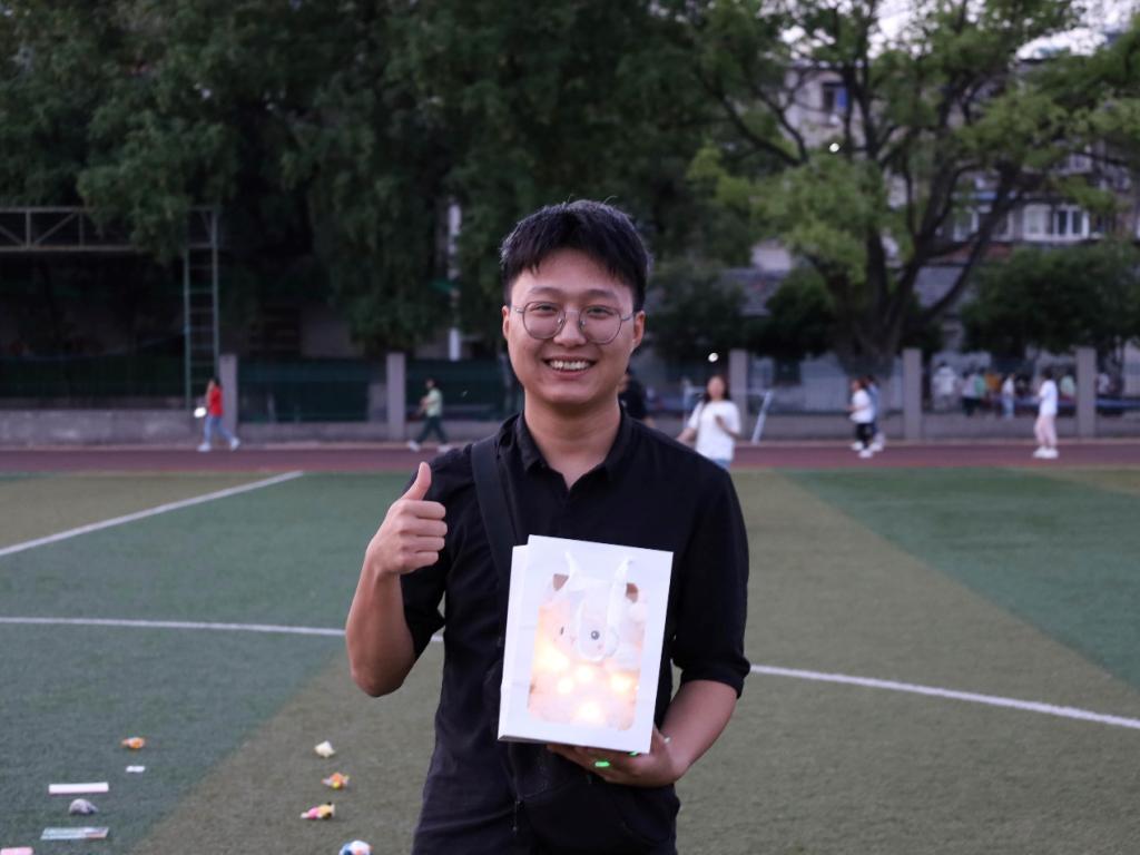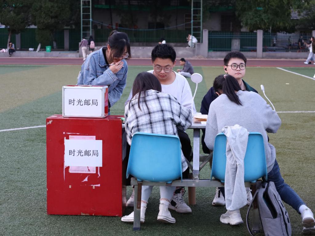 除此之外,该活动还增设了“时光邮局”这一特色环节,让大家通过书信记录心声,传达爱国之情,且每一位参与的学生都可以获得一根象征着“点点星火”的荧光棒。