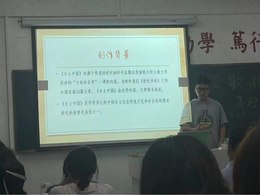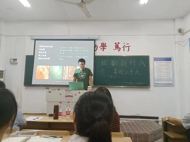 9月4日,为迎接党的二十大胜利召开,大力倡导学生在经典阅读中增强政治素质、提升道德水平、丰富精神世界,积极营造爱读书、读好书、善读书的浓厚氛围,yl7703永利官网汉语言三班开展了以“讴歌新时代,喜迎二十大”为主题的读书分享会。此次分享会特别邀请了中国古代文学博士张瑾老师和中国语言文学博士李忠超老师莅临指导,与同学们共同领略阅读的魅力。