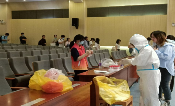 与此同时,图书馆报告厅全员核酸检测工作也陆续展开,永利官网青年突击队队员全力协助核酸志愿工作,落实“应检尽检、不落一人”原则,让每一位留校的学生完成个人核酸检测。