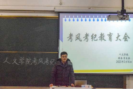 为端正考风,严肃考纪,营造文明、诚信考试的良好风尚,2月16日晚,yl7703永利官网在教学楼215教室召开考风考纪教育大会。yl7703永利官网党委副书记王波出席本次会议,团委负责人潘源、各年级班级主要学生干部和团委学生会干部参加会议。