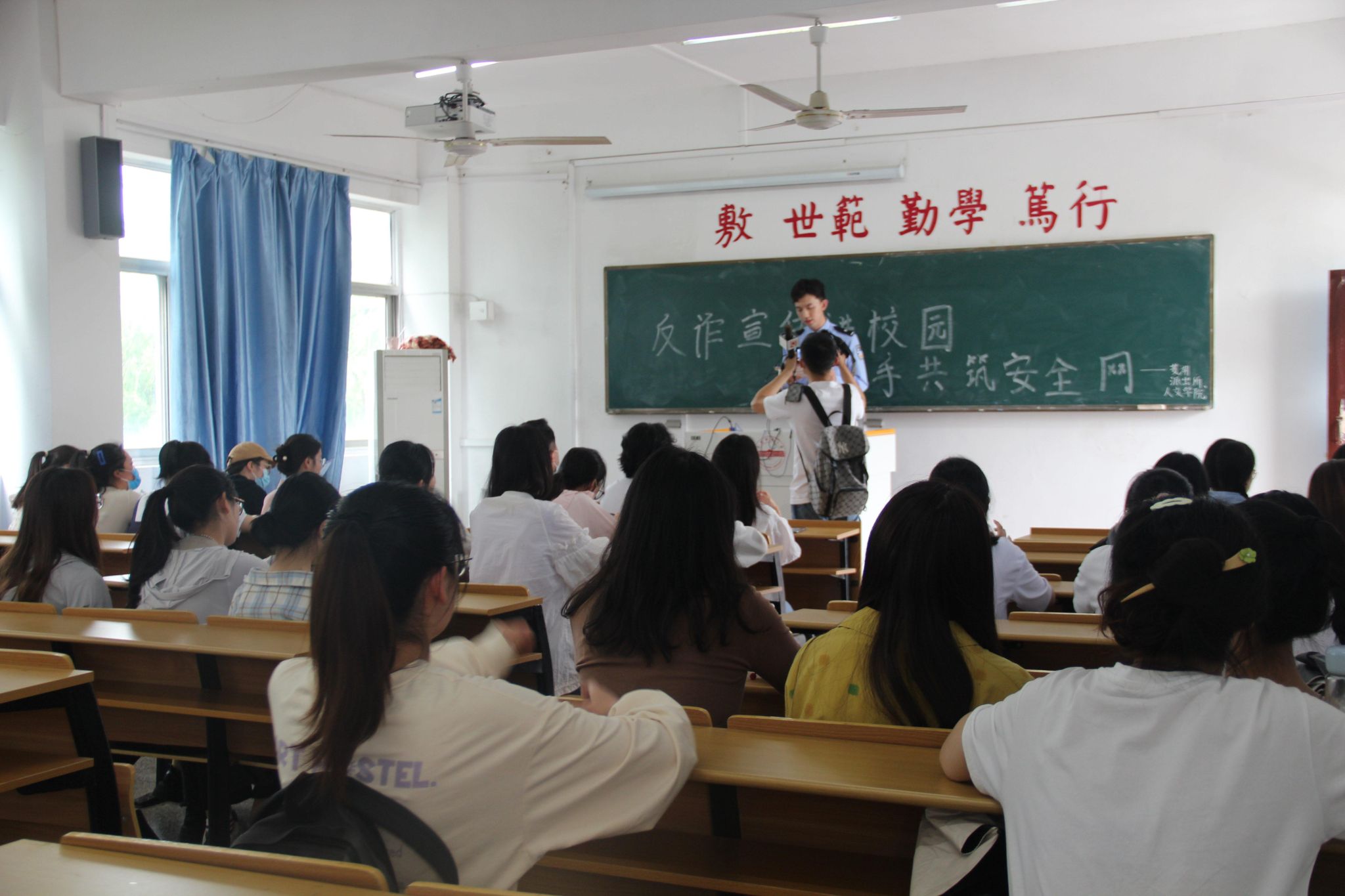 5月25日,yl7703永利官网联合菱湖派出所在教学楼412教室开展了以“反诈宣传进校园 携手共筑安全网”为主题的反诈骗普法活动,旨在进一步增强广大师生的法律意识,提高学院师生的识诈、防诈、反诈能力。