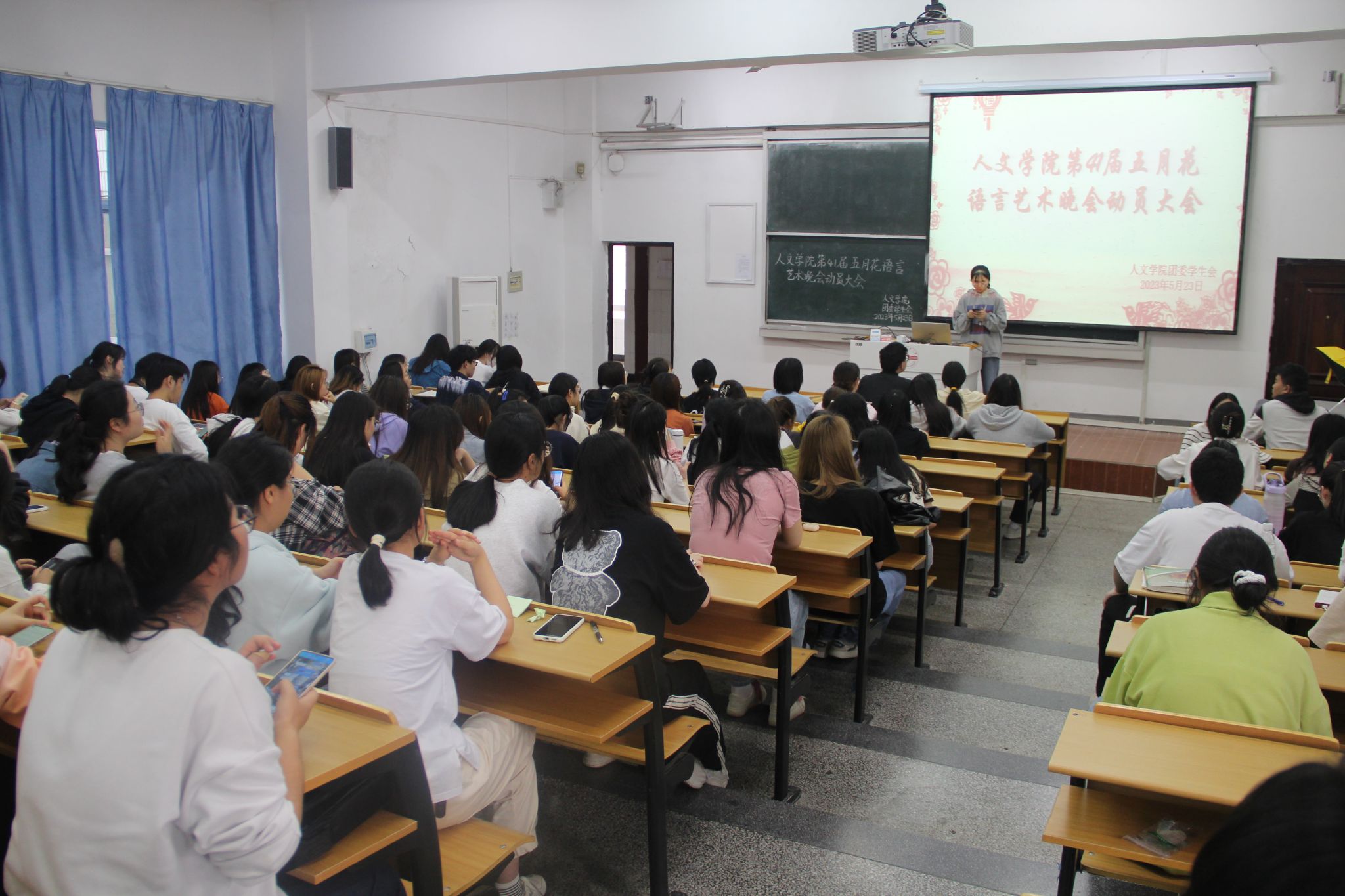 5月24日下午yl7703永利官网召开第41届五月花语言艺术晚会动员大会,yl7703永利官网团委洪星星老师出席指导。自晚会筹备以来,学院高度重视,团委学生会各部门成员各司其职、相互配合,如今晚会筹备已进入最后倒计时阶段。