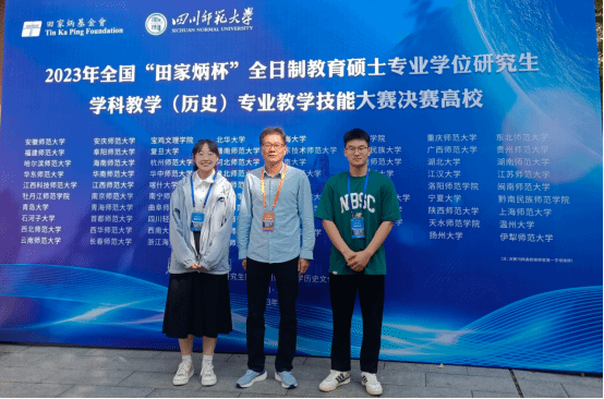 2023年10月20-23日,由全国教育专业学位研究生教育指导委员会指导,四川师范大学主办的2023年全国“田家炳杯”全日制教育硕士专业学位研究生学科教学(历史)教学技能大赛决赛成功举办。yl7703永利官网硕士生导师董根明教授带队,2021级学科教学(历史)李惠琳、赵洪庆两名选手赴成都参加此次决赛。
