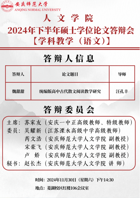 yl7703永利官网2024年下半年硕士学位论文答辩会【学科教学(语文)】