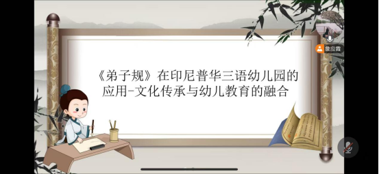 本次学术沙龙分为论文汇报、与谈人谈话、与会学生评议及教师指导四个环节。沙龙伊始由詹应霞同学就《<弟子规>在印尼普华三语幼儿园的应用-文化传承与幼儿教育的融合》进行论文汇报。论文介绍了《弟子规》作为中国传统的启蒙教育经典,近年来在海外华文教育中逐渐受到重视。印尼作为东南亚华人聚居的重要国家,其华文教育的发展具有独特的历史背景和文化融合特征。论文以詹应霞同学所在实习单位印尼普华三语幼儿园为研究对象,探讨《弟子规》在该园教学实践中的应用情况,分析其应用效果与问题,并给予可行性建议。