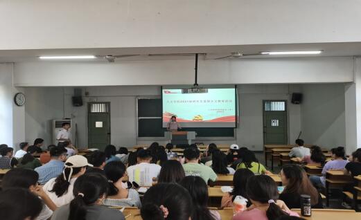 9月17日上午,永利官网举行了爱党爱国教育活动。首先与会的全体同学起立共唱国歌,随后由2020级中国史专业孙燚同学进行宣讲,从安庆市的红色文化谈起,鼓励新同学们不断培养自己的意志品质,在学习和生活中要发扬钉钉子精神,一步一个脚印走完珍贵的三年。宣讲结束后,全体同学观看了建党百年纪录片。最后由新生代表2021级中国史专业张瑞同学进行《我和祖国共成长》的主题发言,张瑞同学结合自己的考研经历,讲述备考以来的成长变化以及对未来的学业规划,将自身发展与国家和民族的命运紧密结合,希望与祖国共同砥砺奋进。