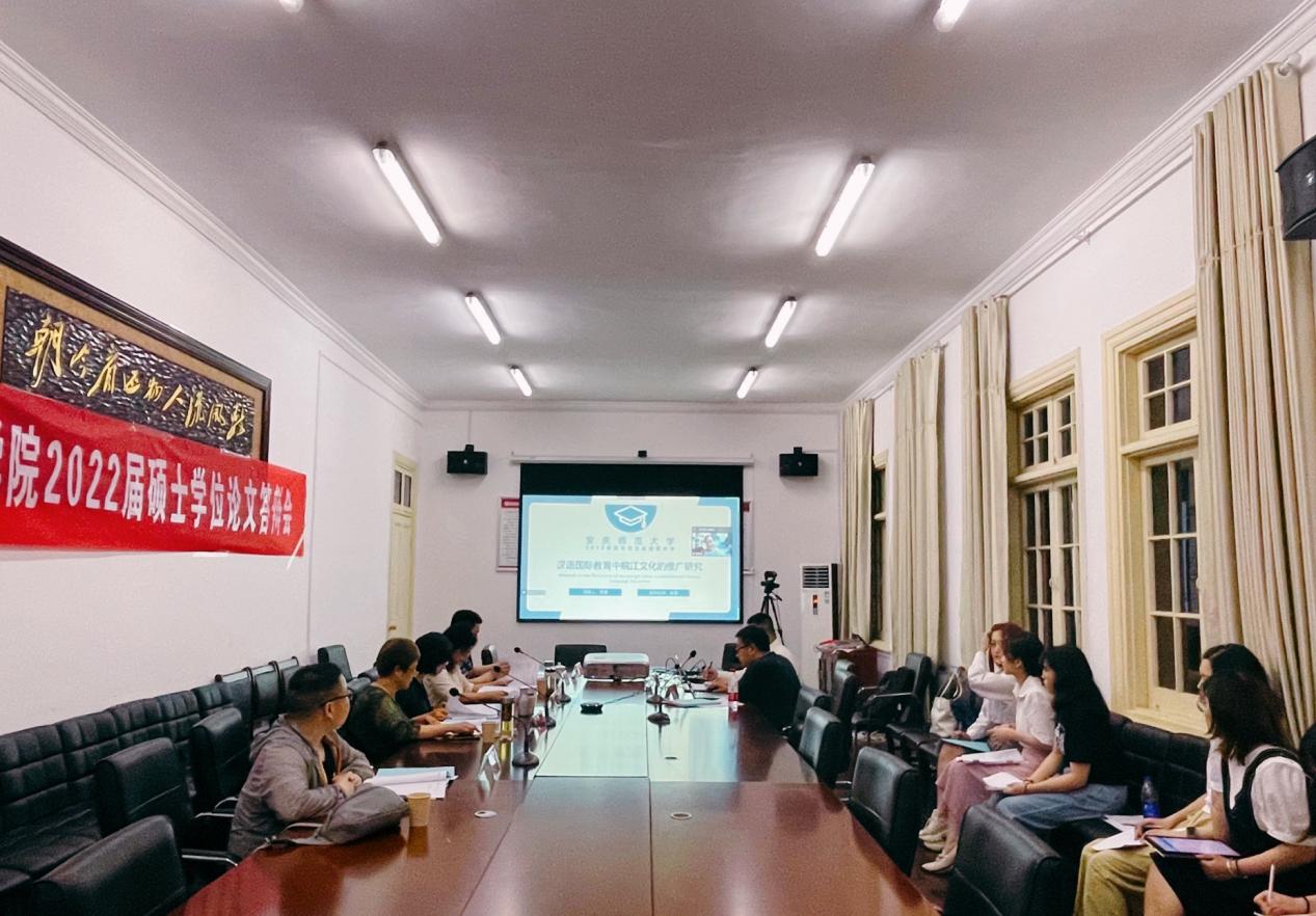 5月31日晚,yl7703永利官网语言学及应用语言学学科在红楼二楼会议室举行2019级硕士研究生学位论文答辩会。会议由鲍红教授主持,答辩委员会主席由安徽师范大学文学院教授、博士生导师储泰松教授担任。委员有鲍红教授、代少若教授、陈世庆副教授、李明副教授、张莹副教授,答辩委员会秘书由曹维平老师担任。2019级语言学及应用语言学三位研究生参与会议,2020级和2021级硕士研究生旁听本次会议。