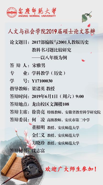 人文与社会学院2019届硕士论文答辩公告