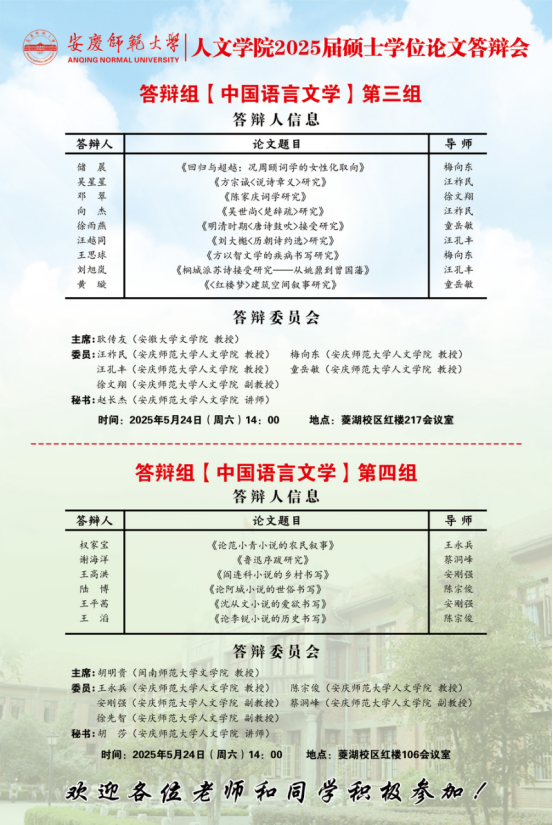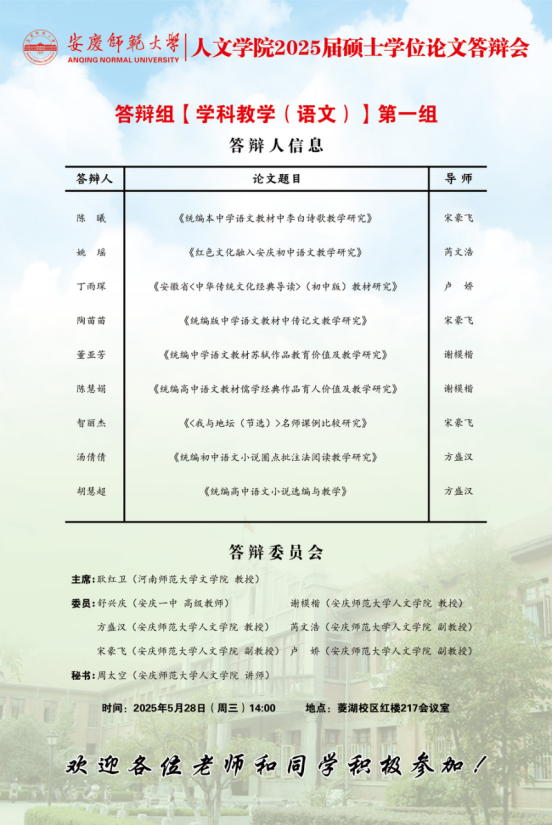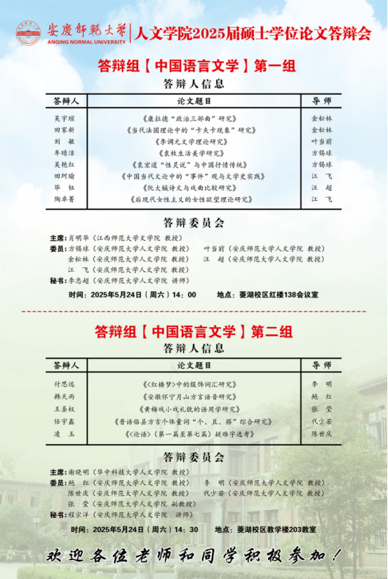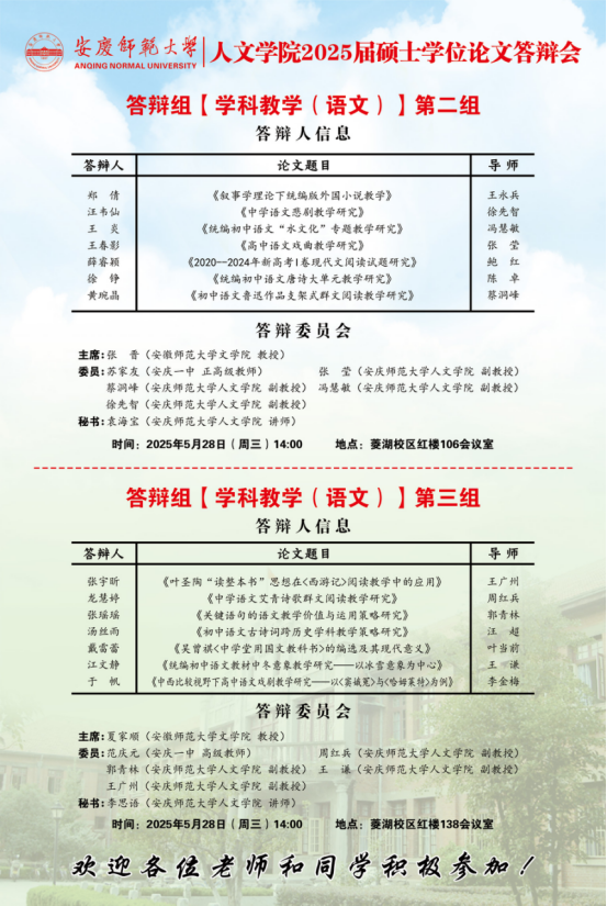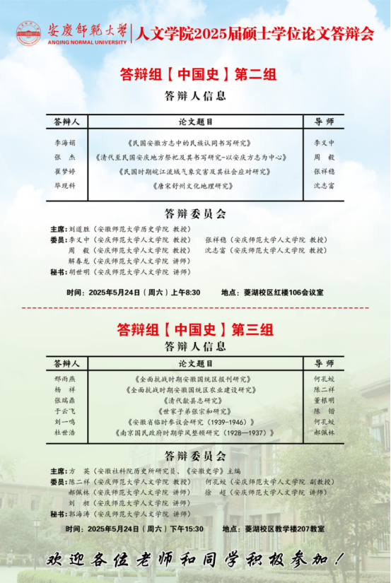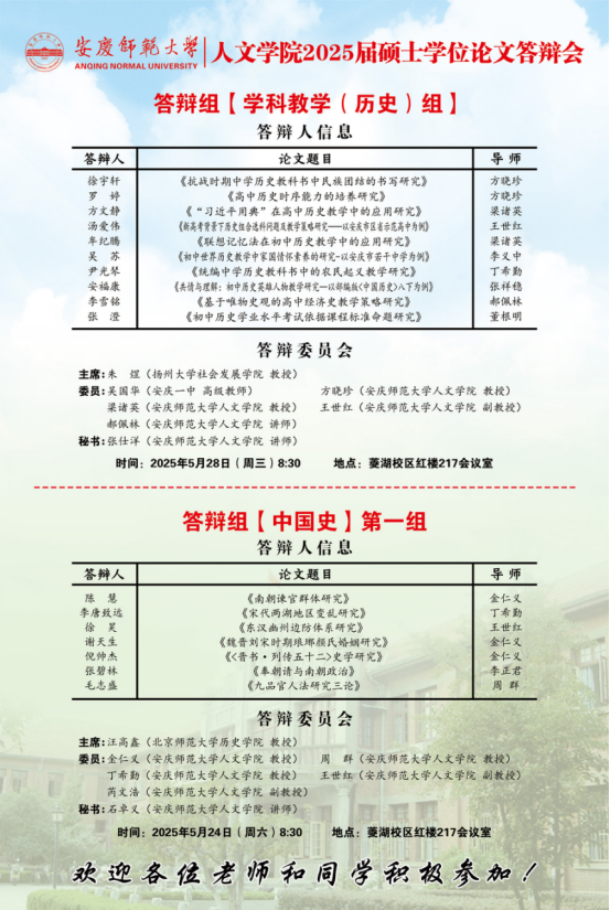 yl7703永利官网2025年上半年硕士研究生学位论文答辩工作安排【中国语言文学组、中国史组、学科教学(语文)组、学科教学(历史)组】