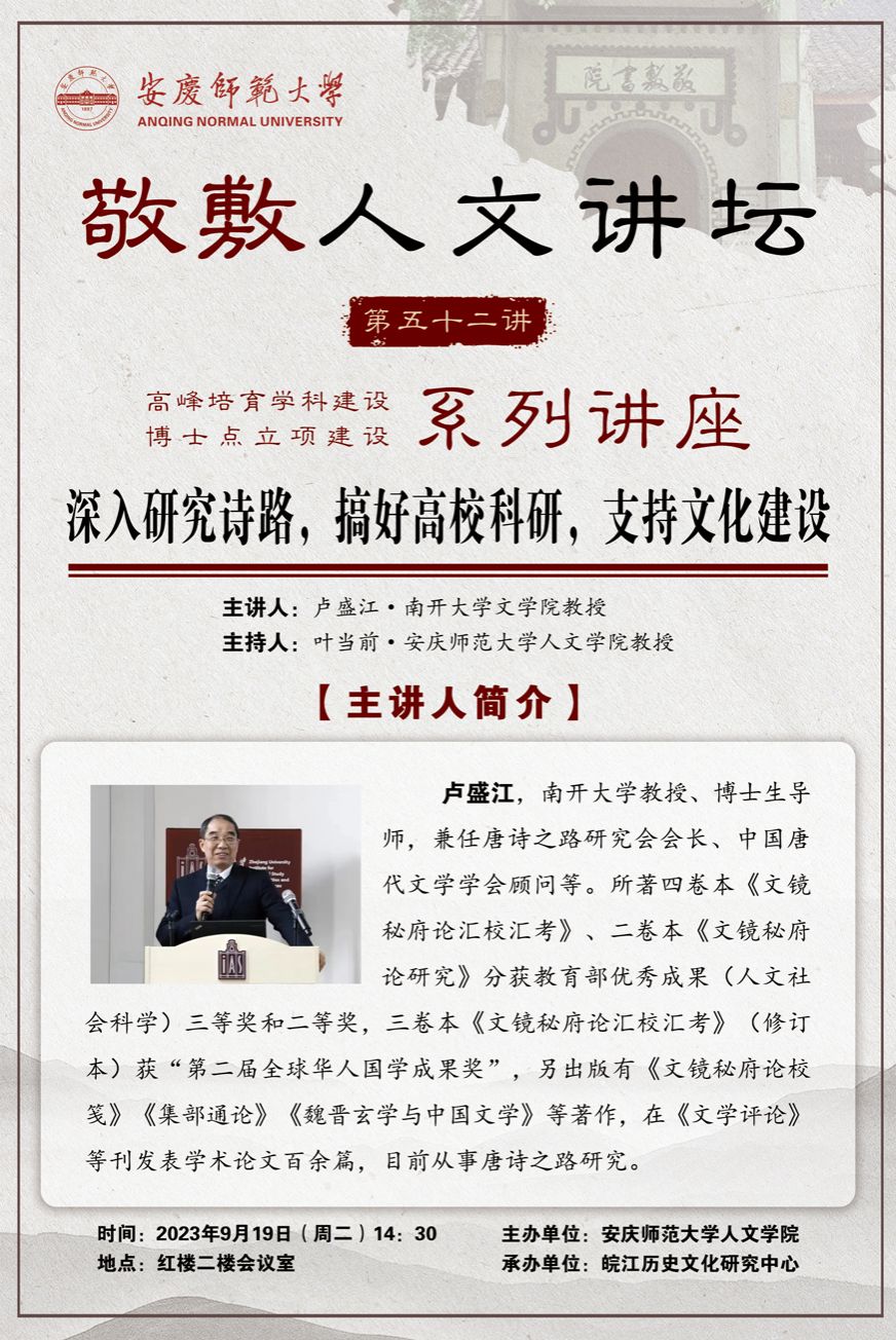 南开大学卢盛江教授应邀做客敬敷人文讲坛