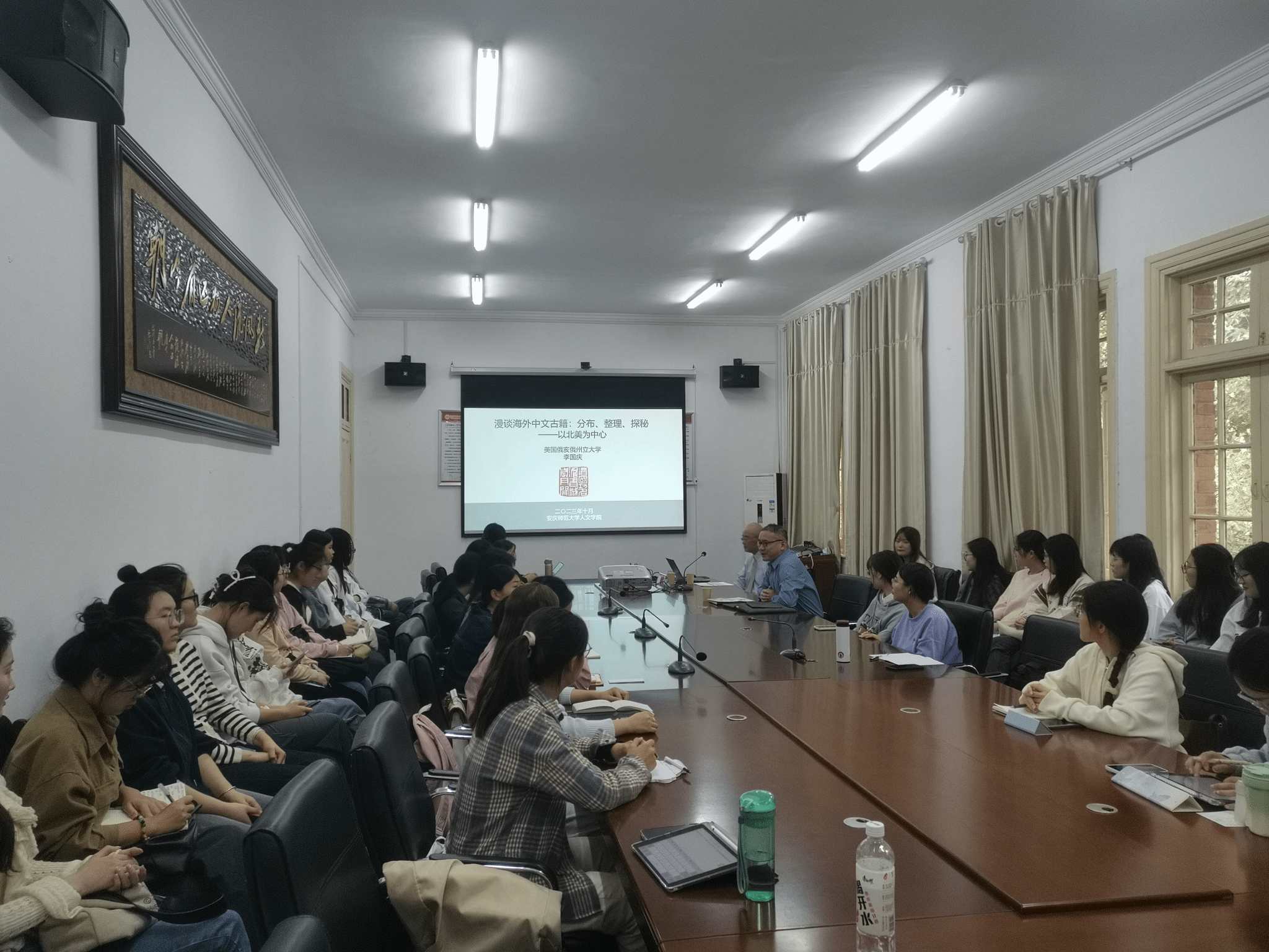 10月9日下午,美国俄亥俄州立大学终身教授、图书馆中韩文部主任李国庆应邀做客敬敷人文讲坛,主讲题为“漫谈海外中文古籍:分布、整理、探秘——以北美为中心”的学术讲座。讲座由yl7703永利官网副院长(主持行政工作)汪孔丰教授主持,永利官网部分青年教师及本科生、研究生到场聆听。