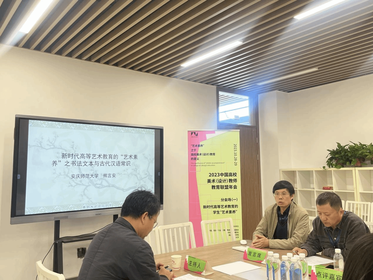 在分组讨论中,永利官网熊言安副教授作题为《新时代高等艺术教育的“艺术素养”之书法文本与古代汉语常识》的专题报告,得到与会专家的好评。熊言安老师多年来坚持中国古代文学与书画艺术融通研究,并兼顾书法创作和旧体诗写作,逐渐形成了个人治学风格,获得了丰硕成果,得到了本专业和书画专业一些同行的认可。