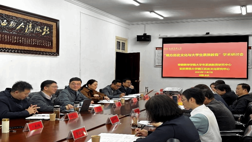11月7日,yl7703永利官网皖江历史文化研究中心与安徽新华学院大学生素质教育研究中心在菱湖校区红楼会议室联合举办“地方历史文化与大学生素质教育”学术研讨会。安徽大学、安徽建筑大学、阜阳师范大学、安徽新华学院等高校专家出席会议。