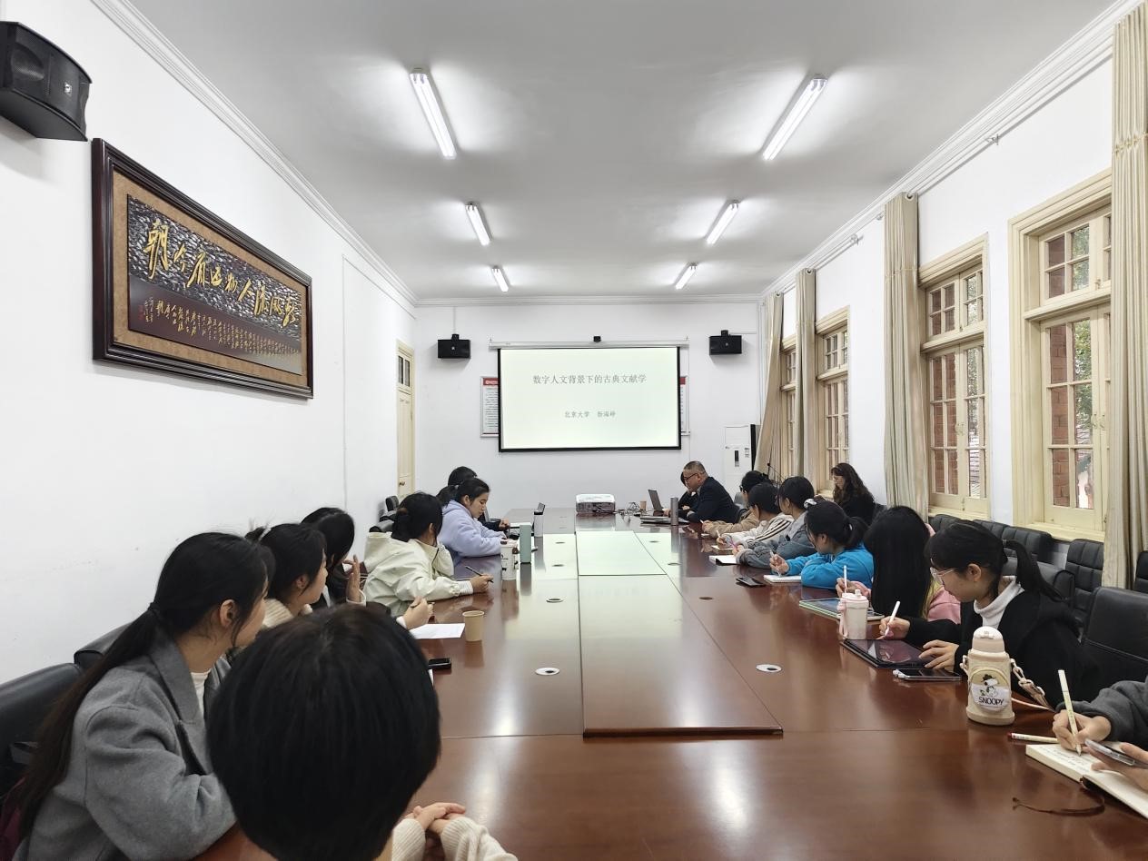 11月24日,北京大学中国古文献研究中心副主任杨海峥教授应邀做客敬敷人文讲坛,在菱湖校区红楼二楼会议室作了题为“数字人文背景下的古典文献学”的学术讲座。讲座由院长汪孔丰教授主持,芮文浩副教授担任与谈人,永利官网部分教师及研究生、本科生参加了此次活动。