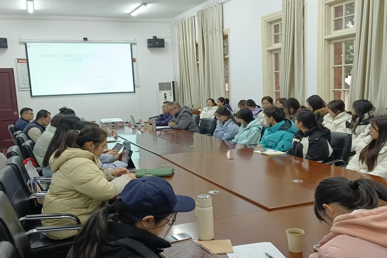 12月25日下午,江苏省社会科学院文学研究所所长、研究员徐永斌应邀做客敬敷人文讲坛,在菱湖校区红楼二楼会议室为参会师生带来了一场题为“治生视域下《聊斋志异》的文士生态与小说创作”的学术讲座。本次讲座由yl7703永利官网院长汪孔丰教授主持,方盛汉、李金梅、徐文翔副教授为与谈人,yl7703永利官网相关专业本科生、研究生参加此次讲座。