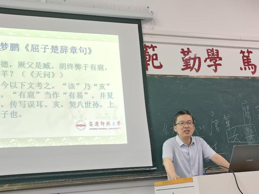 5月20日下午,第34期菱湖学术沙龙在304教室举行,yl7703永利官网谢模楷教授作“屈原及其楚辞研究的困境与思考”的报告,yl7703永利官网赵长杰博士担任主持人,2023级文典班全体同学聆听了谢老师的精彩演讲。