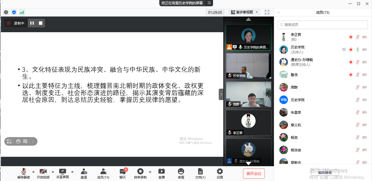6月5日,由中国历史研究院主办,郑州大学承办的《(新编)中国通史.魏晋南北朝卷》开题论证会在郑州大学举行。受广州疫情影响,在线会议同步进行。参加本次会议的人员有:中国历史研究院专项工作处负责人、郑州大学相关领导,中国魏晋南北朝史学会前会长李凭教授及魏晋南北朝史领域的知名学者。永利官网李正君博士作为《魏晋南北朝卷》的核心作者之一也参加了会议。