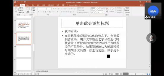 3月9日下午两点,由yl7703永利官网主办、龙睛读书社承办的第13期菱湖学术沙龙线上讲座顺利举行。本次学术报告由梁诸英、方晓珍教授主讲,徐超博士担任主持人,中国史、学科历史专业硕士线上聆听学习。