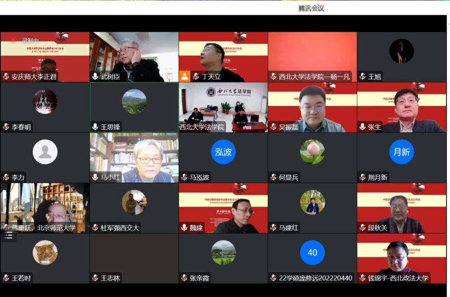 12月17日,中国法律思想史专业委员会2022年会暨“传统法文化与当代法学知识体系的建构”学术研讨会在西北大学召开。本届年会由中国法律思想专业委员会、西北大学以及《山东大学学报(哲学社会科学版)》编辑部主办。会议依托线上交流平台,结合主旨发言、分组讨论等形式,实现了有序高效、研讨充分的预期效果。来自西北大学、南京大学、北京师范大学等30余名高校学者与会研讨。永利官网教师李正君应邀参加本次论坛,并且提交了题为“两晋南朝中央监察体制监督范围探讨”的学术论文,受到与会者的肯定。