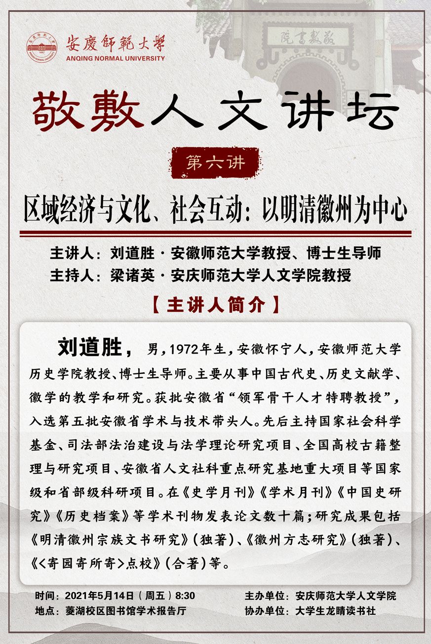 【敬敷人文讲坛⑥】区域经济与文化、社会互动:以明清徽州为中心