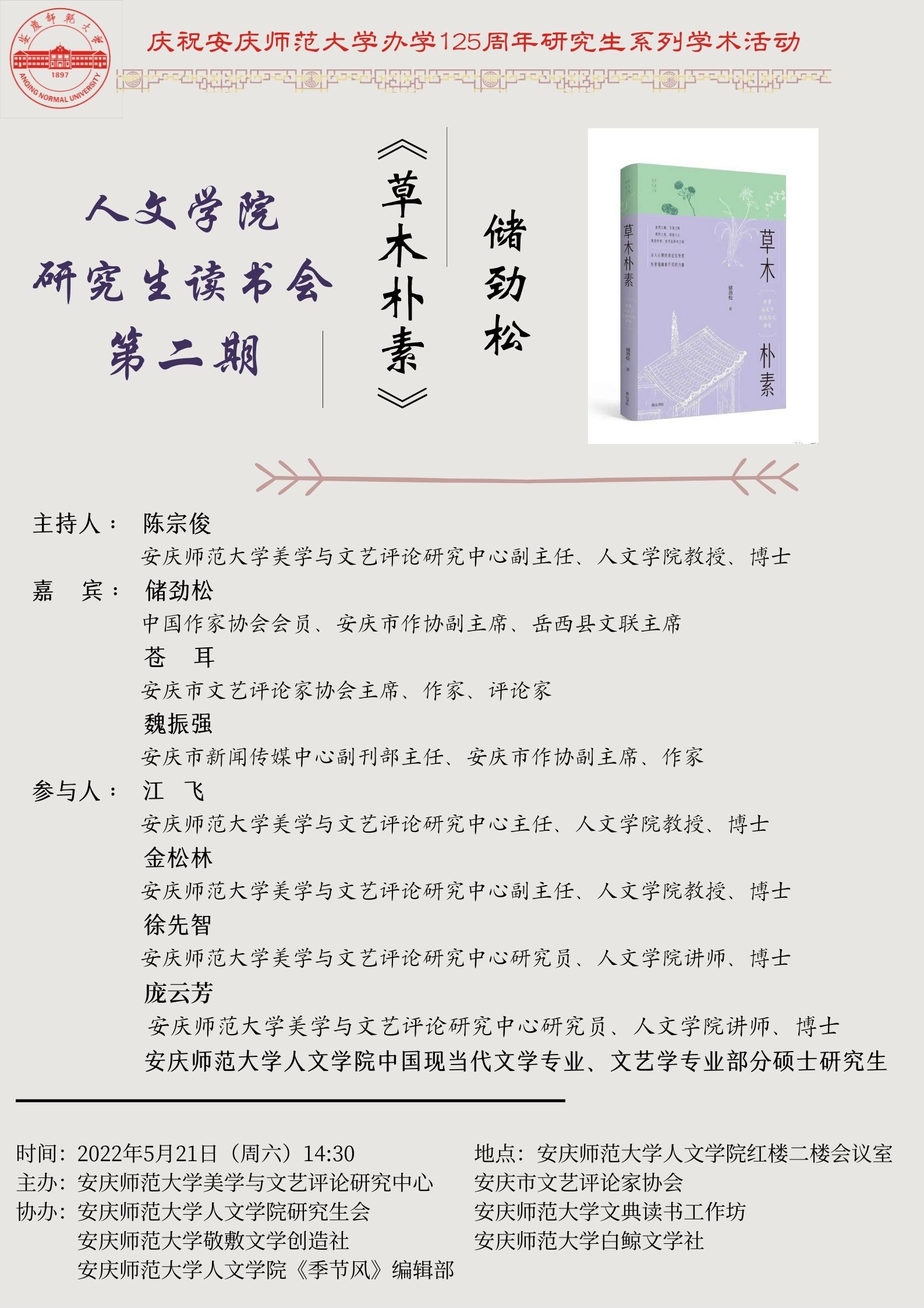 上一篇:皖江评论第三期储劲松散文集《草木朴素》读书研讨会顺利举办