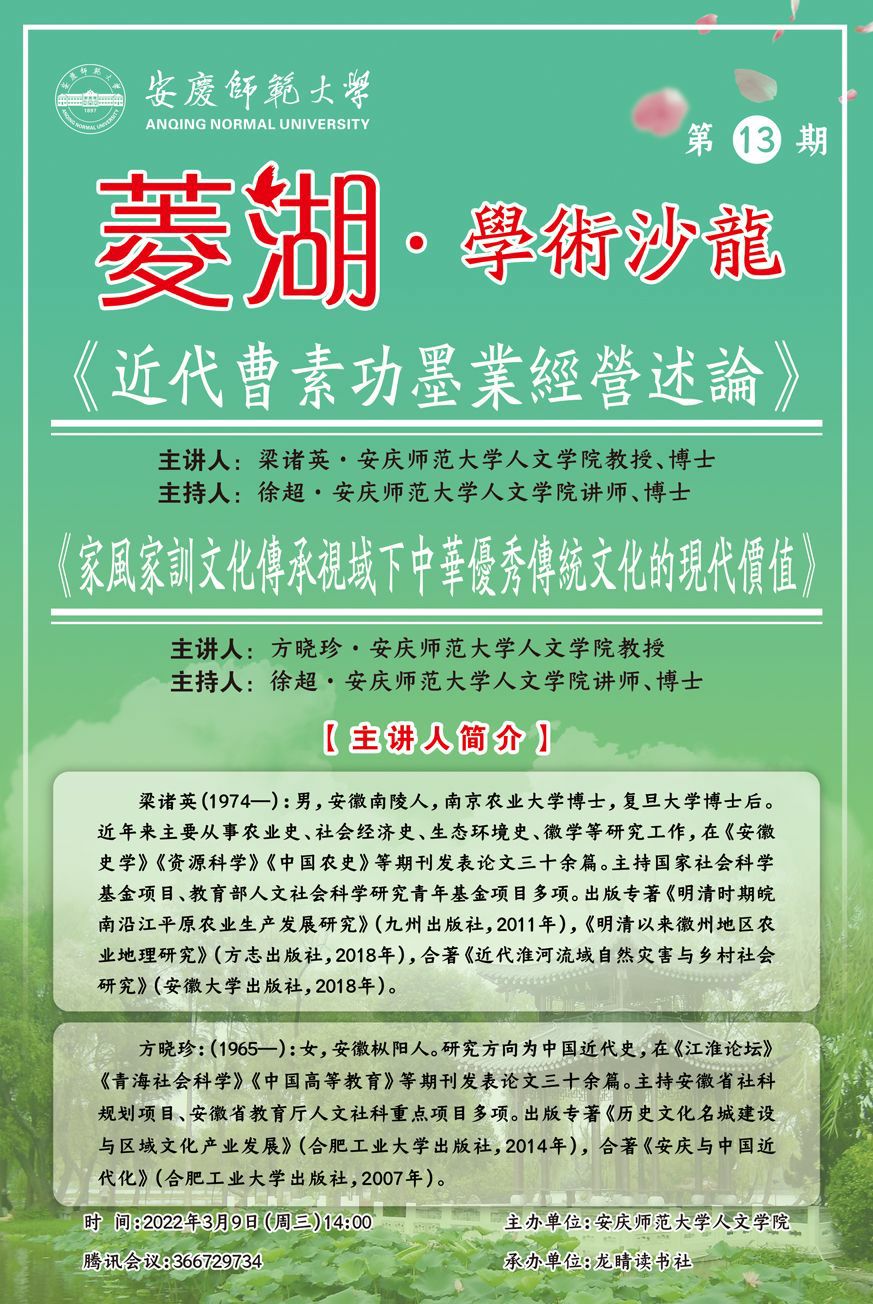 【菱湖学术沙龙(13)】《近代曹素功墨业经营述论》《家风家训文化传承视域下中华优秀传统文化的现代价值》