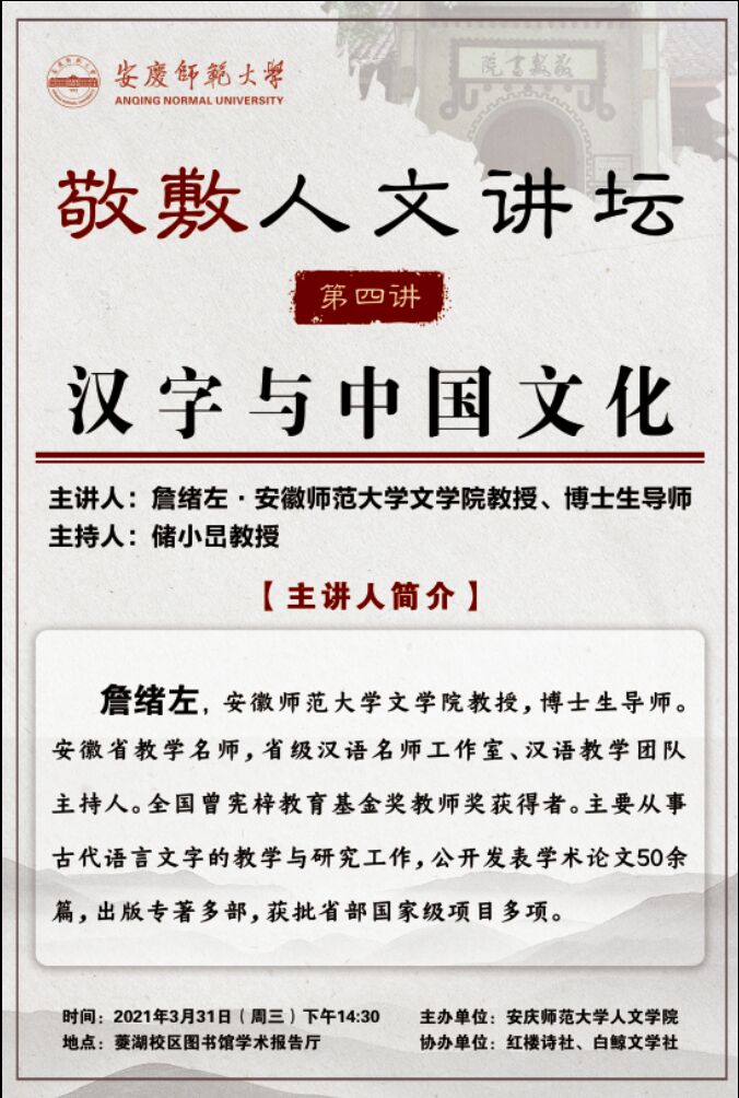 上一篇:【敬敷人文讲坛】安徽师范大学詹绪左教授应邀来永利官网讲学