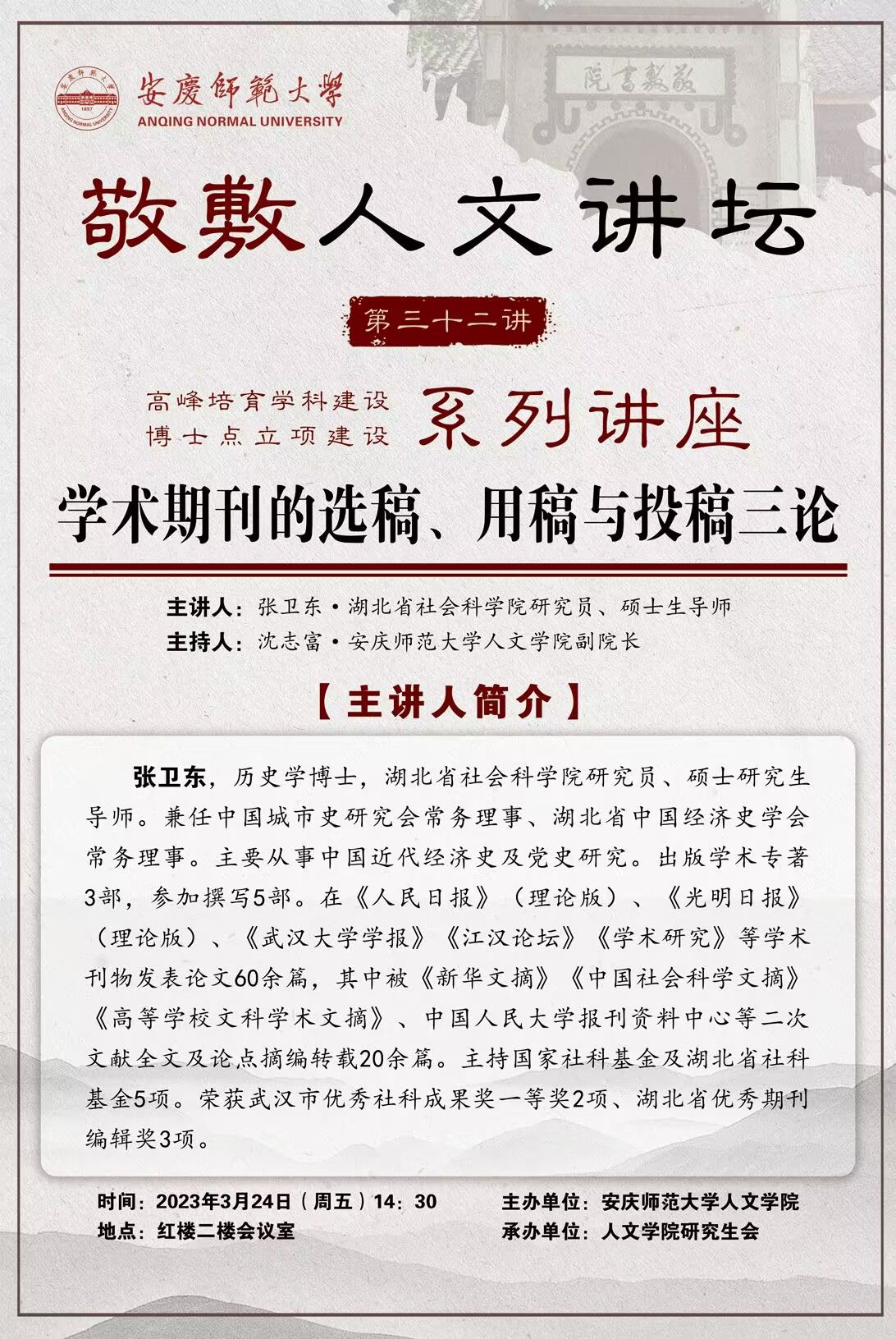【敬敷人文讲坛(32)】学术期刊的选稿、用稿与投稿三论