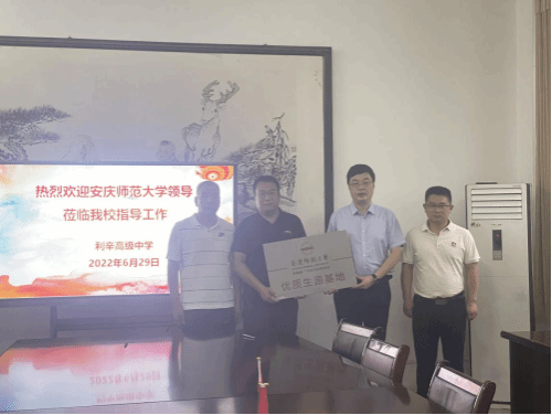 王波代表学校与利辛县高级中学签订了优质生源基地协议书,进行了“优质生源基地”的挂牌。