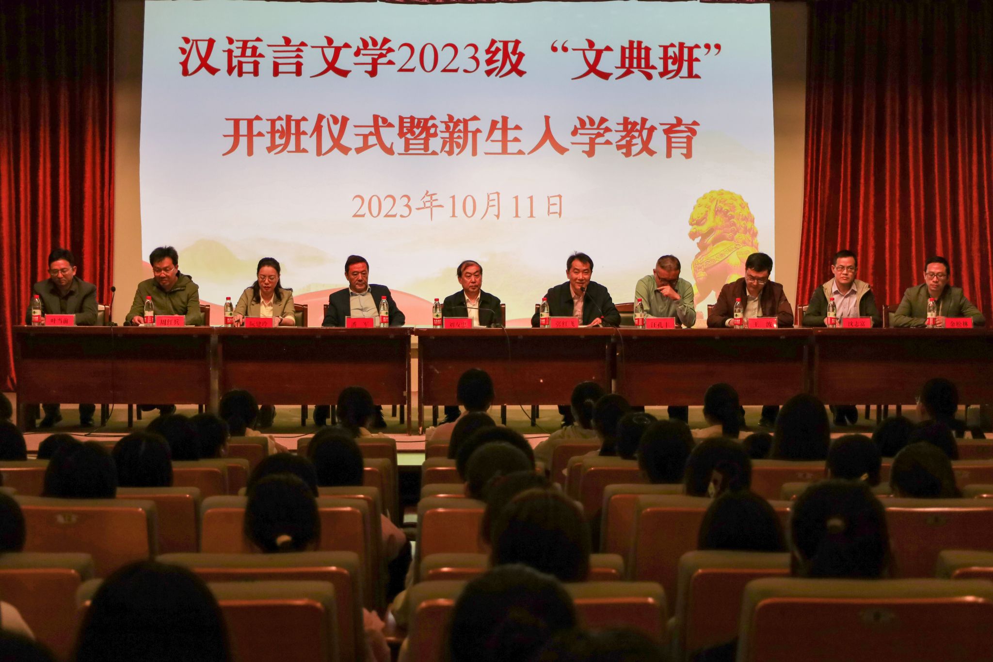 10月11日,学校举行2023级汉语言文学专业“文典班”开班仪式暨新生入学教育,校党委常委、副校长刘友忠,校党委常委、办公室主任、yl7703永利官网党委书记张红飞出席开班式,当代著名作家、影视导演潘军应邀出席。教务处、yl7703永利官网负责同志,教师代表、2023级文典班全体学生及2023级中国语言文学类部分学生代表参加开班仪式。开班仪式由张红飞主持。