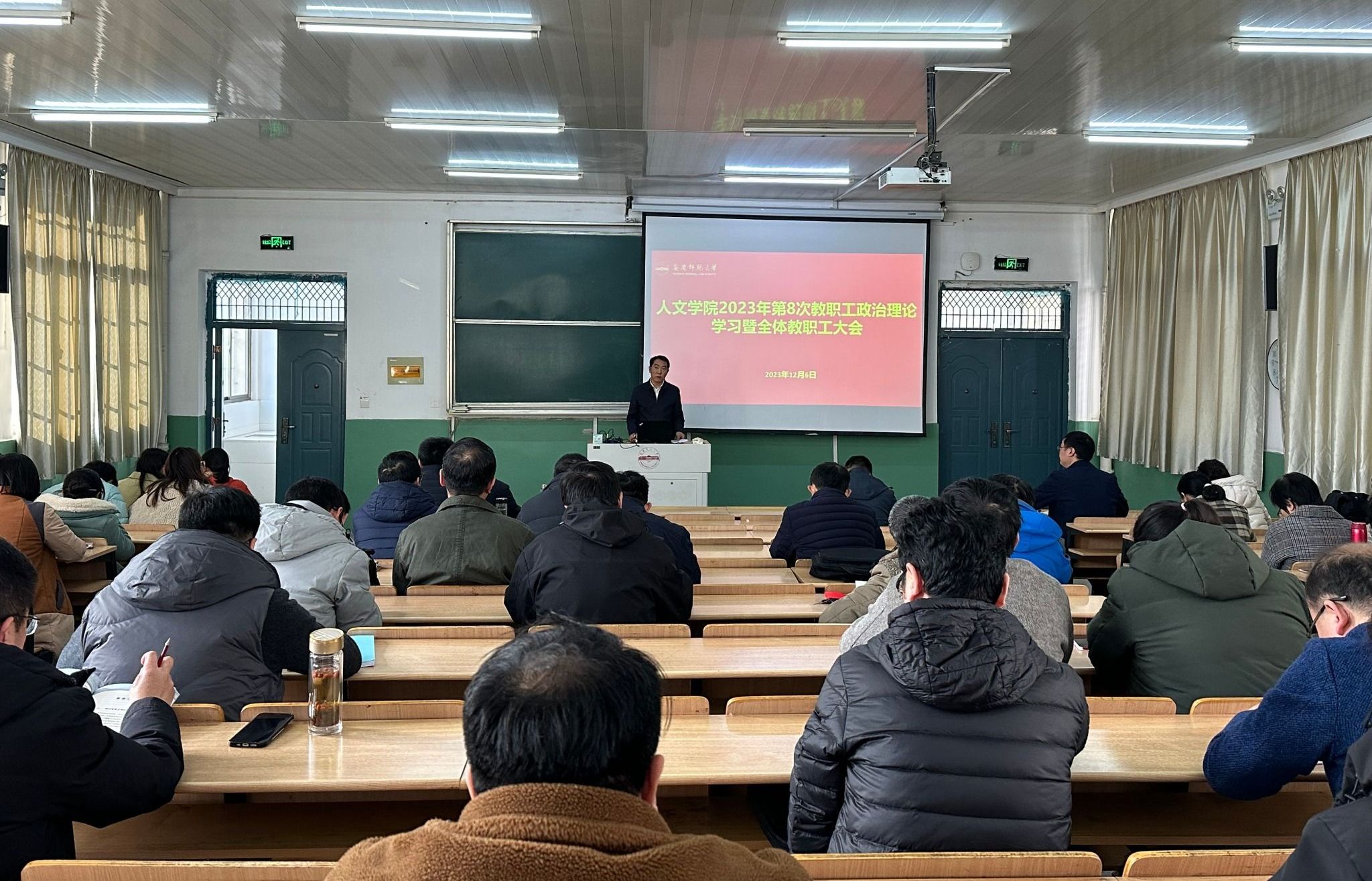 12月6日下午,yl7703永利官网在菱湖校区理二阶教室召开2023年第8次教职工政治理论学习会,深刻学习领会习近平总书记对宣传思想文化工作作出的重要指示和全国宣传思想文化工作会议精神,学习韩俊在省委理论学习中心组学习会议上的讲话精神等内容。学院领导班子成员出席会议,全体教职员工参加了学习会。