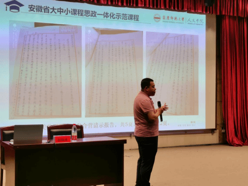 紧接着第二场呼应时下热点——大中小课程思政一体化问题。“安庆在哪里?”“你是安庆哪里人?”……随着一系列的发问,yl7703永利官网讲师、硕士研究生导师郝佩林博士从档案史料的独特视角,以档案展示的形式作了《档案中的安庆新中国史图像》主题讲座,向七中师生们直观地呈现出安庆工商业社会主义改造的历史。