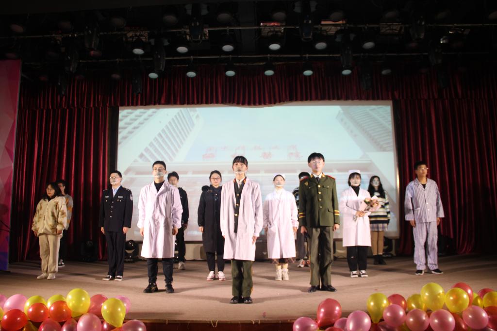 2019级汉语言文学一班艾宇龙说:“2020年是抗疫之年,在疫情期间,涌现出无数平民英雄,谱写了无数动人的篇章。为致敬这些伟大的英雄们,永利官网话剧社自编自导,原创话剧《黎明之前》。”话剧由警察在疫情期间阻止居民外出、军人母亲自愿奔赴抗疫前线、基层医生的防疫工作逐步得到群众理解等不同片段组成。演员们饱含深情,充分投入到表演之中,将观众带入不同的故事,再现了抗疫过程中医疗战士迎难而上和坚守岗位的感人画面,赢得现场一片掌声。