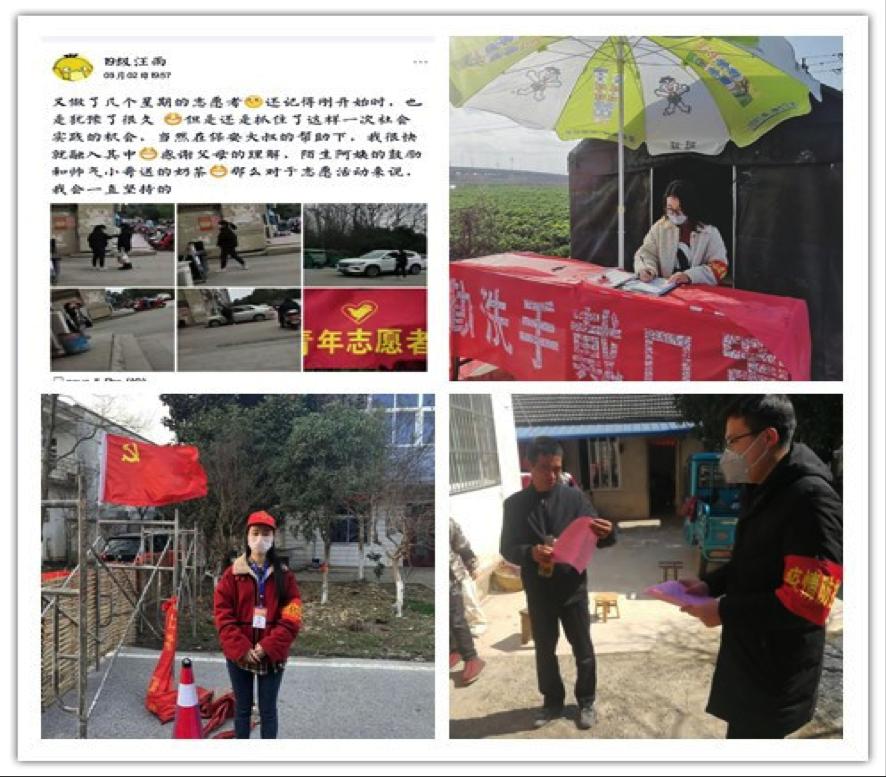 yl7703永利官网2016级历史学的方萍作为一名学生党员,积极响应党员志愿者号召,主动报名,成为芜湖市三山区峨桥镇浮山村强湾小区的志愿服务者,她说道:“每天工作七个小时左右,负责监管小区内的车辆和人员进出,给小区居民普及防疫知识和每日的最新疫情动态,担任小区的快递员和外卖员,给老人送去食品物资。虽然志愿服务工作很辛苦,但是作为一名党员,能够通过奉献为人民群众服务,锤炼党性,既满足又自豪。”