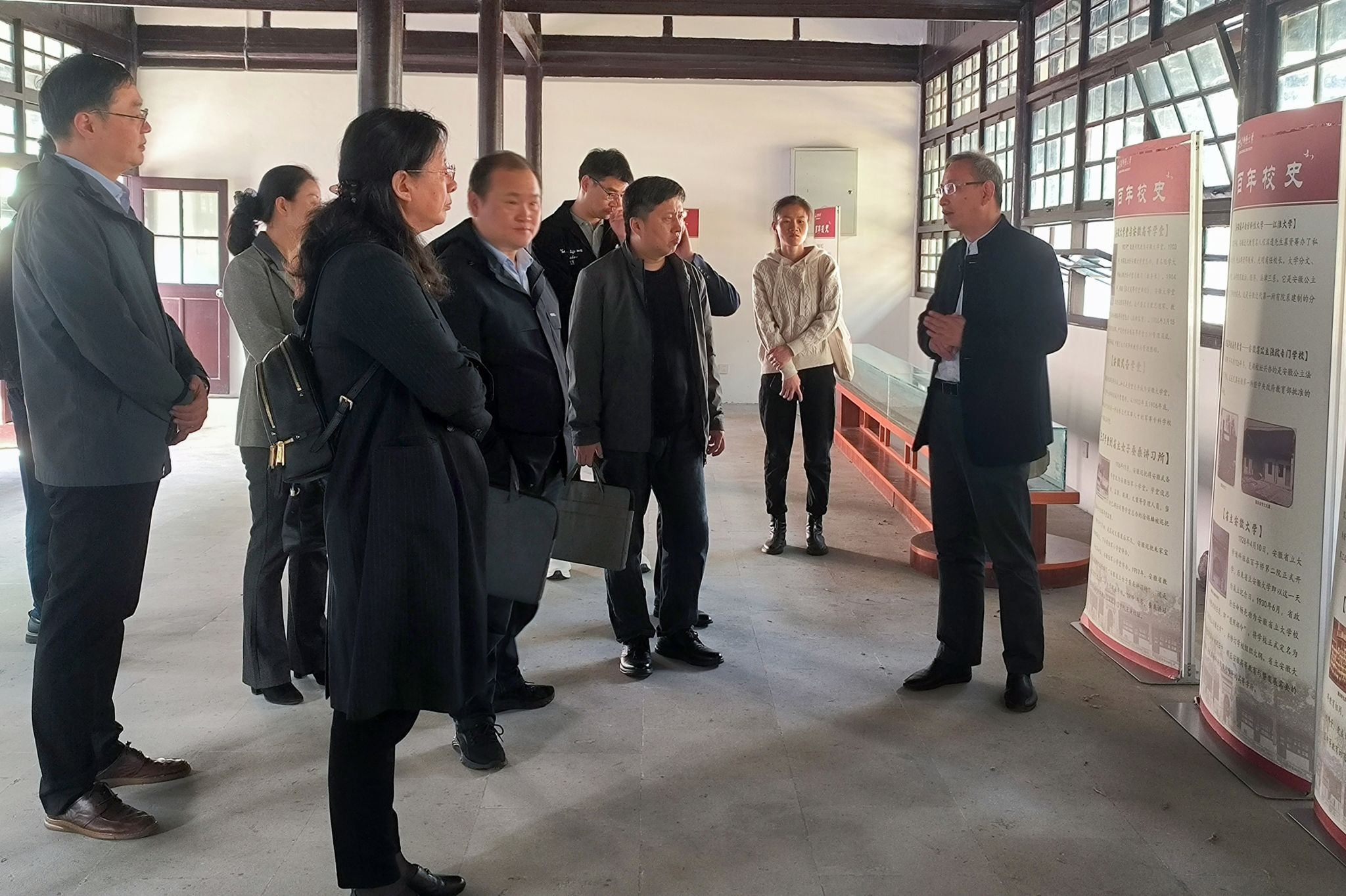 交流期间,校档案馆馆长、学报编辑部主任金仁义带领山东大学郭春晓书记一行参观了敬敷书院旧址和国立安徽大学红楼。(撰稿:潘娇 庞妮 摄影:张译文 审核:王波)