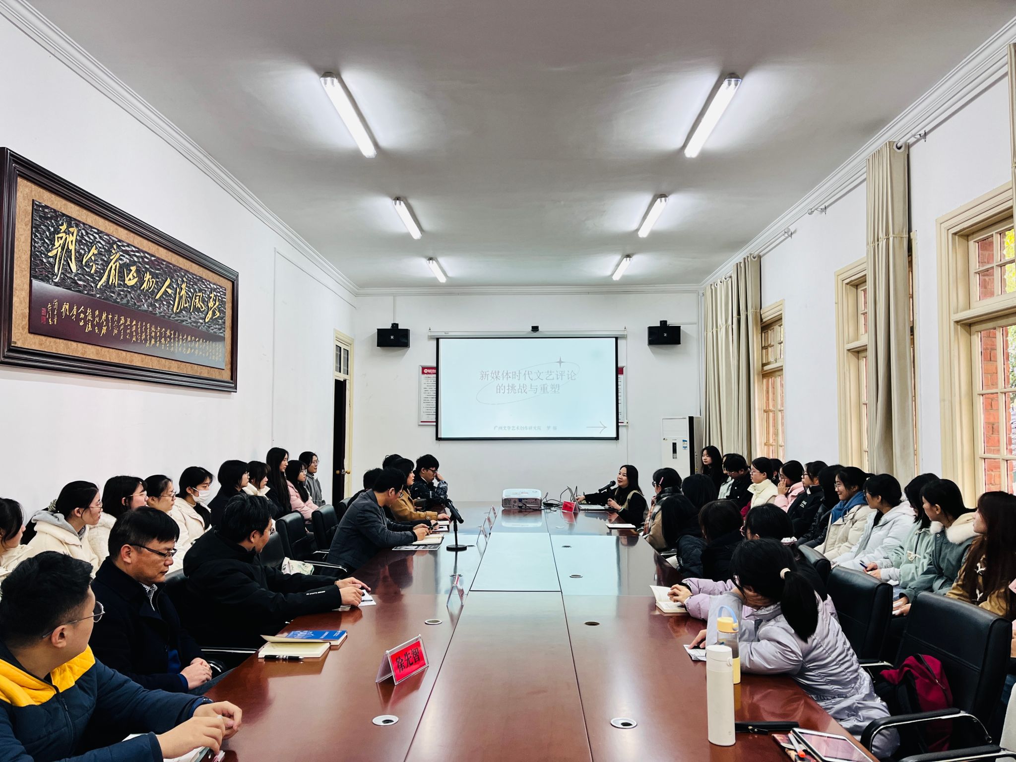 12月6日下午,文艺评论家菱湖大讲堂第一期成功举办。中国文艺评论家协会理事、广东省文艺评论家协会副主席、广州市文艺评论家协会主席、国家一级编剧罗丽应邀作了题为“新媒体时代文艺评论的挑战与重塑”的精彩讲座。本次讲座由安徽省文艺评论家协会副主席,yl7703永利官网美学与文艺评论研究中心主任江飞教授主持,yl7703永利官网副院长周红兵、中心副主任陈宗俊教授和专职研究员以及学院“文典班”、研究生近五十人参与。