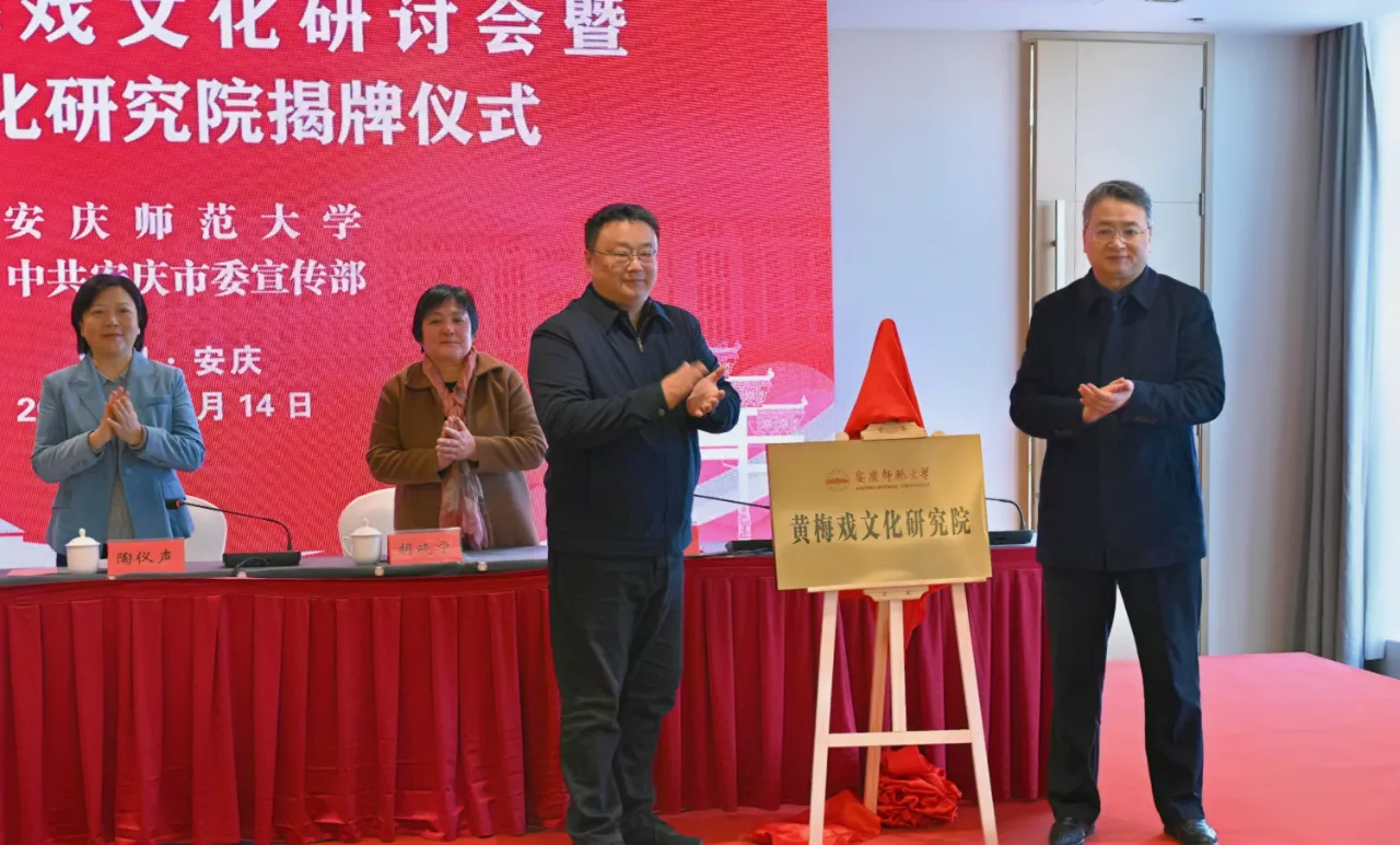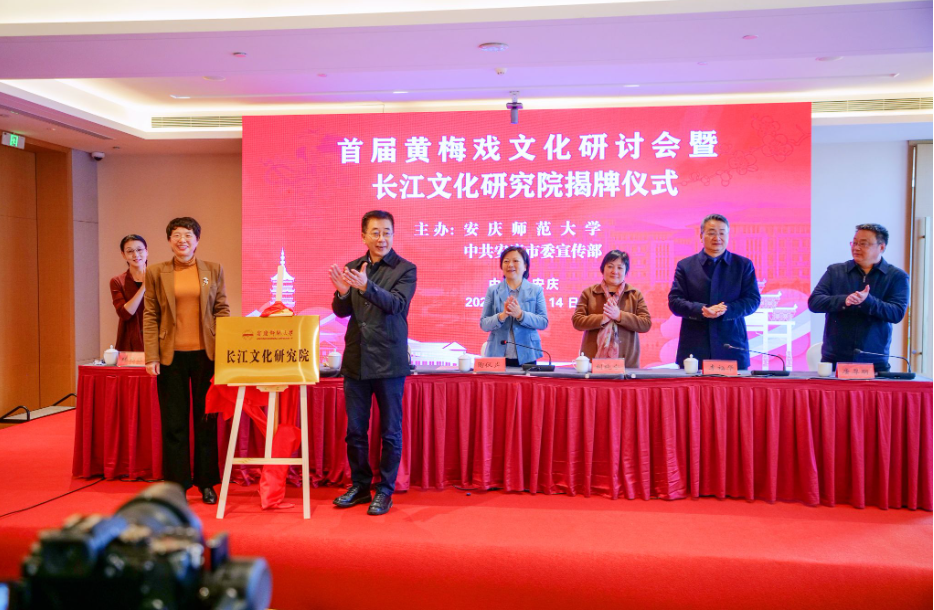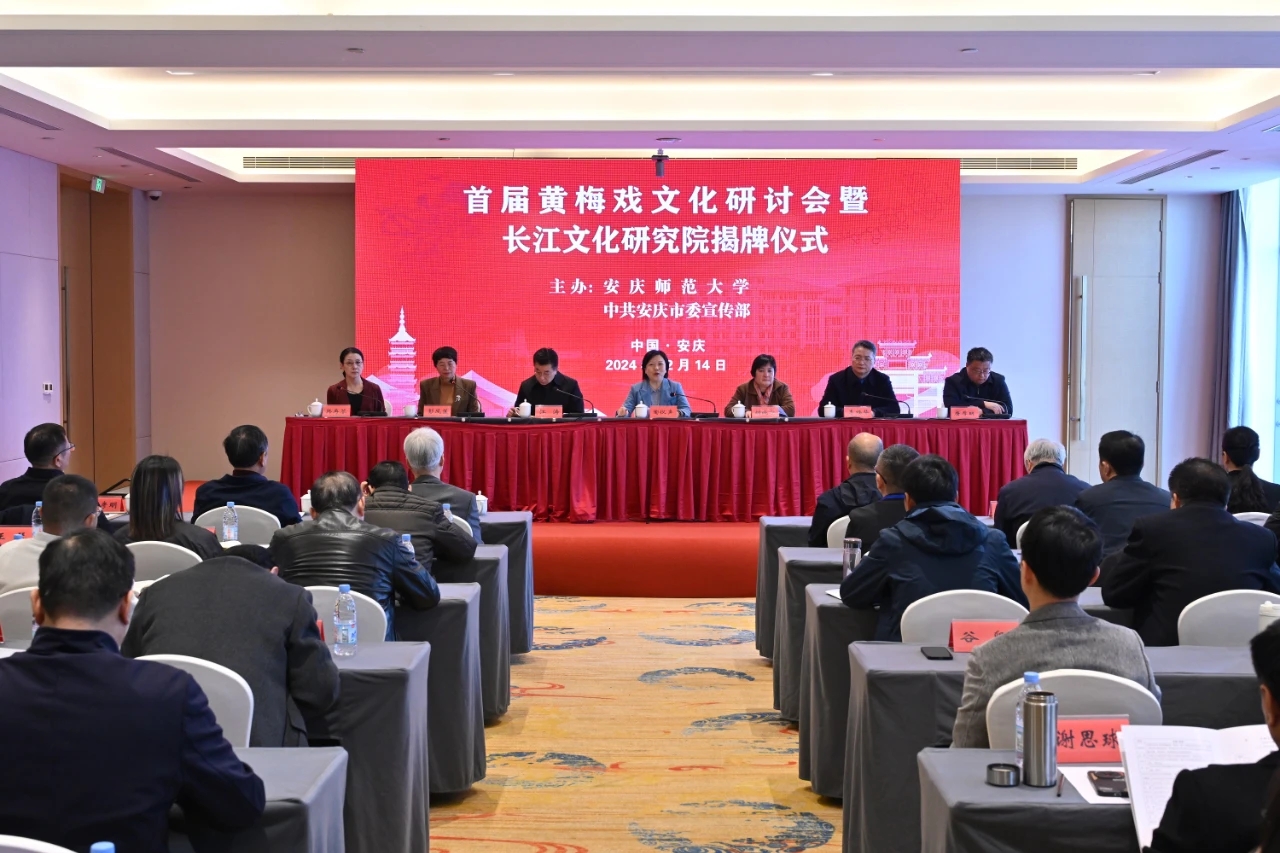 12月14日,“首届黄梅戏文化研讨会暨长江文化研究院揭牌仪式”在安庆成功举行。本次会议由yl7703永利官网和中共安庆市委宣传部联合主办,yl7703永利官网长江文化研究院、yl7703永利官网、科研处等单位联合承办,会上同步揭牌yl7703永利官网长江文化研究院和黄梅戏文化研究院。安徽省政协副主席陶仪声,安徽省委宣传部二级巡视员胡晓宁,安徽省社科联党组成员、副主席江涛,yl7703永利官网党委书记李福华,安庆市人民政府副市长唐厚明,中国戏剧家协会副主席、安徽省再芬黄梅艺术剧院院长、yl7703永利官网黄梅剧艺术学院院长韩再芬出席开幕式。来自南京大学、上海戏剧学院、中国艺术研究院、首都师范大学、安徽大学、安徽艺术学院、安徽师范大学、安徽省黄梅戏艺术职业技术学院、桐城师范高等专科学校、安徽省黄梅戏剧院、安庆市黄梅戏(地方戏曲)研究院、安徽再芬黄梅艺术剧院、池州市黄梅戏剧院、望江县黄梅戏剧院等单位机构的80多位专家、学者和名家名角参加会议。yl7703永利官网校长彭凤莲主持开幕式。