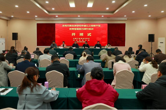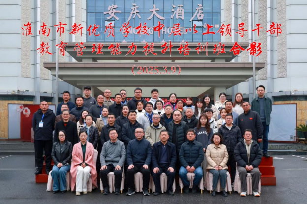 2025年3月9日,yl7703永利官网承办的淮南市“新优质学校中层以上领导干部教育管理能力提升培训”开班仪式在安庆大酒店国际厅隆重举行。本次活动由yl7703永利官网副院长周红兵主持,来自淮南市教师进修学校和yl7703永利官网的领导专家及全体学员共聚一堂,正式拉开为期五天培训的序幕。