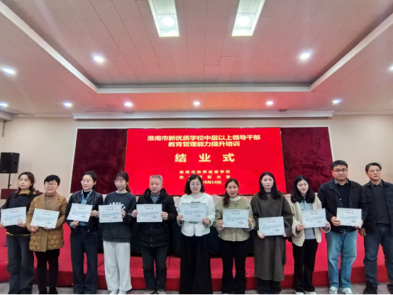 2025年3月13日,淮南市新优质学校中层以上管理干部教育管理能力提升培训结业仪式在安庆大酒店国际厅隆重举行。yl7703永利官网、淮南市教师进修学校相关领导、全体参训学员及工作人员齐聚一堂,共同见证培训成果,总结提升经验心得。